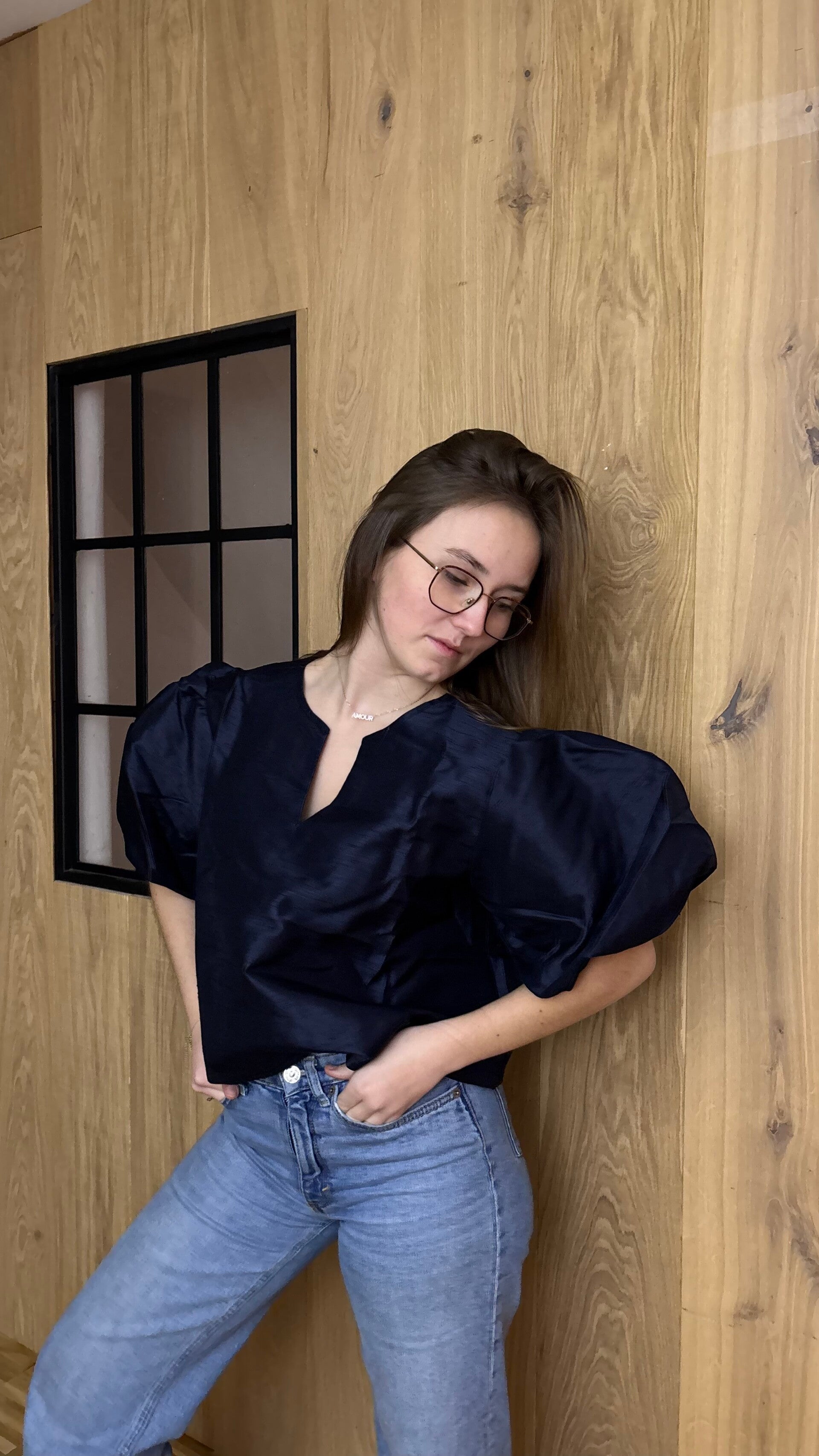 Puff sleeve navy - ONE SIZE