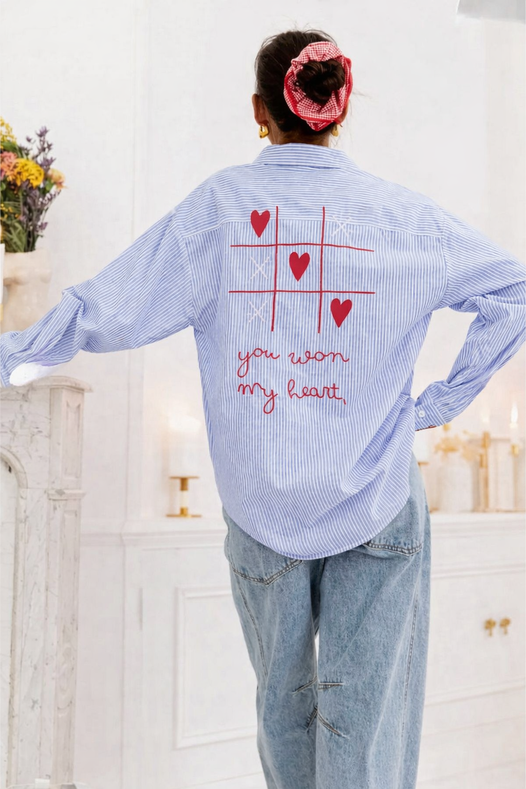 Gestreepte blouse met geborduurd hart, gemaakt van katoen en polyester, ideaal voor de lente